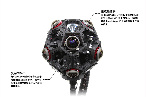 零件 - Radiant Images公司使用Markforged打印AXA 360°全景相機設備的整個畫面。