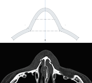 (為了設(shè)計面罩的底部,我用我鼻子的CAT掃描作為原型參考依據(jù)。我增加了額外的空間,并減少了我的臉頰輪廓的半徑以計算泡沫墊尺寸)