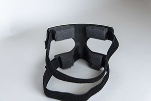 為了將面具固定在我的臉上,我購買了兩個便宜的彈性維可牢尼龍搭扣帶,并將它們打印在面具中間位置。 他們將面具緊緊地“貼”在我的臉上,而不會感到不舒服。 使用強力膠水將泡沫墊粘在面罩的邊緣。