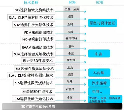 一張圖看懂3D打印技術在汽車行業(yè)的應用