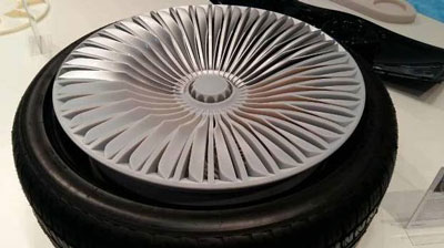 下圖的Stratasys的汽車輪胎原型是為賓利定制的,輪胎與輪轂一次性制造完成,與原車的輪胎大?。?:1;材料名稱:VeroGrey;制造時間:188小時28分鐘;材料消耗:24995g;支撐材料消耗:27413g