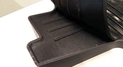 汽車墊子下方是硬的塑料,上面是可以折疊的橡膠材質(zhì)。當打印像1000x800x500mm這樣大型的產(chǎn)品的時候,Stratasys Object 1000 Plus就派上了用場,不僅可以1:1的尺寸制造汽車,航空航天行業(yè)需要的原型,而且經(jīng)濟。