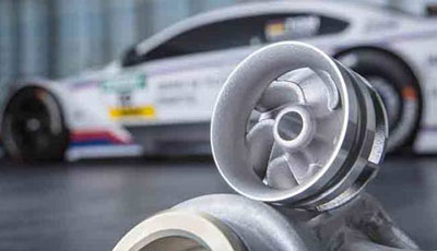 下圖的這個部件是用選擇性激光熔融(SLM)技術制造的,該技術主要通過使用激光融化金屬粉末制造3D對象。制造完成的水泵輪被安裝到一輛寶馬DTM賽車的動力系統(tǒng)中。這使得寶馬公司能夠快速迭代水泵輪,甚至如果需要的話可以根據(jù)具體的比賽條件進行定制。而且無需生產(chǎn)模具,零部件修改需要的成本接近于零。