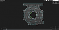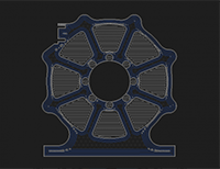 我們?cè)谡麄€(gè)零件中引入了同心碳纖維以加強(qiáng)設(shè)計(jì)。為了確保軸承座的安裝和應(yīng)變力不會(huì)使零件變形,我們用盡可能多的纖維環(huán)填充零件的后壁。該部分的殼體需要較少的強(qiáng)度,所以我們?cè)诿總€(gè)墻層上放置了一圈纖維作為緩沖。采用這種策略,我們能夠以較少的纖維大大提高零件的環(huán)箍強(qiáng)度。一旦這個(gè)模型加載到Eiger軟件中,我們就可以開始打印了。
