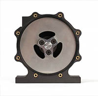 渦輪機(jī)殼體有幾個(gè)重要的要求:首先,它需要與軸承座無縫嚙合,這意味著對(duì)于軸承座存在+ .001 / -0的誤差。重要的部分是整個(gè)外殼,一個(gè)緊密的網(wǎng)格能夠減輕振動(dòng),可能會(huì)在電機(jī)高速旋轉(zhuǎn)時(shí)撕裂渦輪葉片。其次,渦輪機(jī)外殼需要十六個(gè)螺紋孔;背板上安裝八個(gè)用于安裝軸承座和另外八個(gè)安裝在前蓋板上 。從結(jié)構(gòu)角度來看,聚碳酸酯蓋板是較小的部件,但在確保高壓空氣流過渦輪葉片方面是非常重要的。渦輪的空腔必須與葉片之間具有非常小的間隙嚙合。小間隙配合為葉片轉(zhuǎn)動(dòng)提供了間隙,同時(shí)也使葉片和腔壁之間的間隙變小化,這將顯著的減小能耗損失。