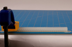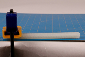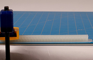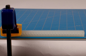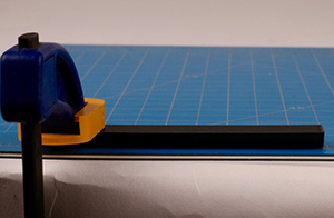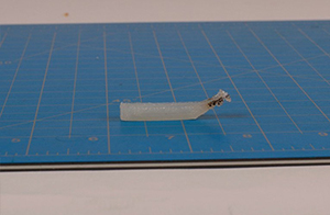 這是從打印板脫落后的部分變形零件。為了展現(xiàn)出翹曲程度,我在桌子的一邊夾住了零件,觀察了另一邊的翹曲: