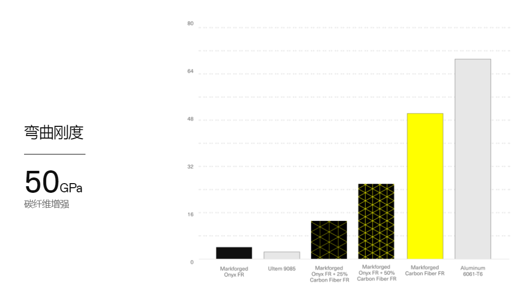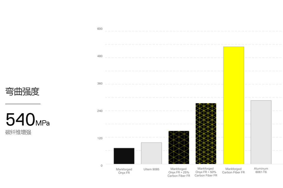 碳纖維 FR 是 Markforged 獨(dú)有的超高強(qiáng)度連續(xù)碳纖維的阻燃版本,在用來增強(qiáng) Onyx FR 之類的復(fù)合基材時(shí),可以制作強(qiáng)度與 6061-T6 鋁合金相當(dāng)?shù)牧慵F鋭偠群蛷?qiáng)度極高,可以準(zhǔn)確鋪設(shè)成各種幾何形狀。用戶可通過編程方式跟蹤彎曲結(jié)構(gòu)、加固孔洞和模擬單向纖維鋪陳,所有這些僅需幾次點(diǎn)擊即可輕松完成。