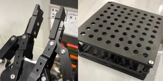 克林特最初從Markforged合作伙伴D3 Technologies購買了一臺(tái)Markforged X7 3D打印機(jī),為工廠車間創(chuàng)建強(qiáng)大的小批量工具。他對X7 3D打印機(jī)開始生產(chǎn)工具所需的超短的預(yù)備時(shí)間印象深刻。自適應(yīng)調(diào)平和預(yù)打印校準(zhǔn)功能等功能實(shí)際上減少了操作人員在工作間隙進(jìn)行設(shè)置的時(shí)間,使他們騰出時(shí)間來完成更重要的功能,如設(shè)計(jì)工裝和操作數(shù)控機(jī)床。最初,該團(tuán)隊(duì)的目標(biāo)是為他們的通用機(jī)器人定制末端執(zhí)行器夾持墊,但這很快演變成為預(yù)加工部件定制網(wǎng)格,以努力減少轉(zhuǎn)換時(shí)間。該團(tuán)隊(duì)也經(jīng)常需要一個(gè)定制的subplate設(shè)置為他們的車床和軋機(jī),這將需要一個(gè)機(jī)械師的時(shí)間來制造。工程師們認(rèn)為Markforged平臺(tái)打印定制安裝定位板是一個(gè)好辦法。設(shè)計(jì)者確保定位板是可適應(yīng)的(adaptive),這意味著他們可以用于幾個(gè)不同的機(jī)器,而不是僅僅一個(gè)。這為公司節(jié)省了大量的時(shí)間和資金,并且使他們的數(shù)控機(jī)床能夠制造產(chǎn)生收入的最終部件,而不是加工內(nèi)部使用的部件。