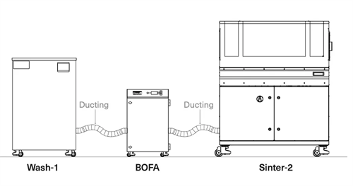 Markforged Metal X 3D打印系統(tǒng)需要設(shè)備排氣通風(fēng),以管理Metal X系統(tǒng)(特別是Wash-1、Sinter-1和Sinter-2)的廢氣排放。通過安裝過濾排煙技術(shù),可以滿足Markforged客戶工廠的排煙通風(fēng)要求,這種技術(shù)可以根據(jù)您的空間配置,充分過濾Metal X系統(tǒng)的Wash-1、Sinter-1和Sinter-2產(chǎn)生的廢氣,然后將它們卸回生產(chǎn)空間。Markforged已經(jīng)確定了BOFA(BOFA Americas Inc.)提供的過濾排煙裝置,您可以自由考慮和評估,以滿足您的Metal X通風(fēng)需求。