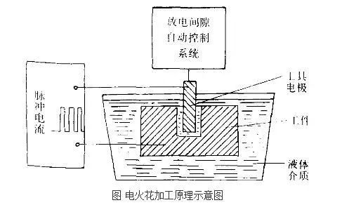 利用浸在工作液中的兩極間脈沖放電時產(chǎn)生的電蝕作用蝕除導電材料的特殊加工方法。我們都有這樣的生活經(jīng)驗,電器開關(guān)在經(jīng)過一段時間的使用之后,往往會出現(xiàn)觸點部分的表面被電火花電蝕得粗糙不平的現(xiàn)象,這就是電火花電蝕現(xiàn)象。電火花加工就是利用這一原理,具體如圖《電火花加工原理示意圖》所示,在一定介質(zhì)中,通過工具電極和工件電極之間的脈沖放電的電蝕作用,對工件進行加工的方法。實現(xiàn)這一加工的基本方式是這樣的: 把工具電極和工件全部浸在工作介質(zhì) (電解液) 中,在兩極間產(chǎn)生多次火花放電,有意識地控制工件的蝕除量,最后就可使工件達到一定的尺寸和粗糙度要求。