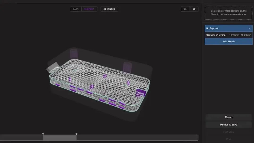 我們從客戶那里反饋到,希望能夠?qū)崿F(xiàn)自由控制零件的支撐區(qū)域。收到反饋后,我們開始不停的探索,最終宣布我們的Eiger 3D打印軟件添加了一項新的支撐覆蓋功能,使得去除支撐變得輕而易舉: