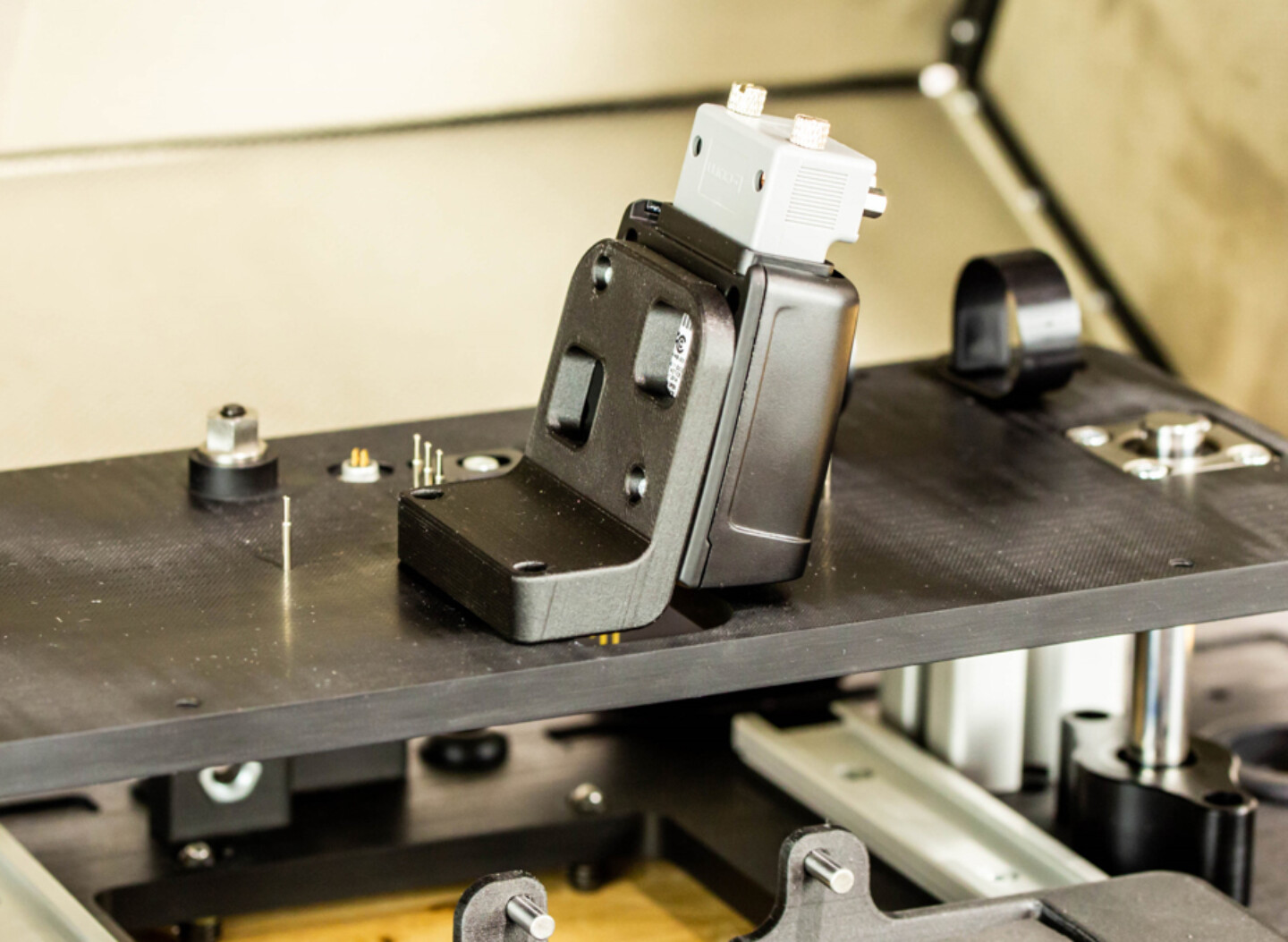 在設(shè)備檢查期間 加入碳纖維的Markforged零件用于將激光視覺系統(tǒng)固定在精確位置