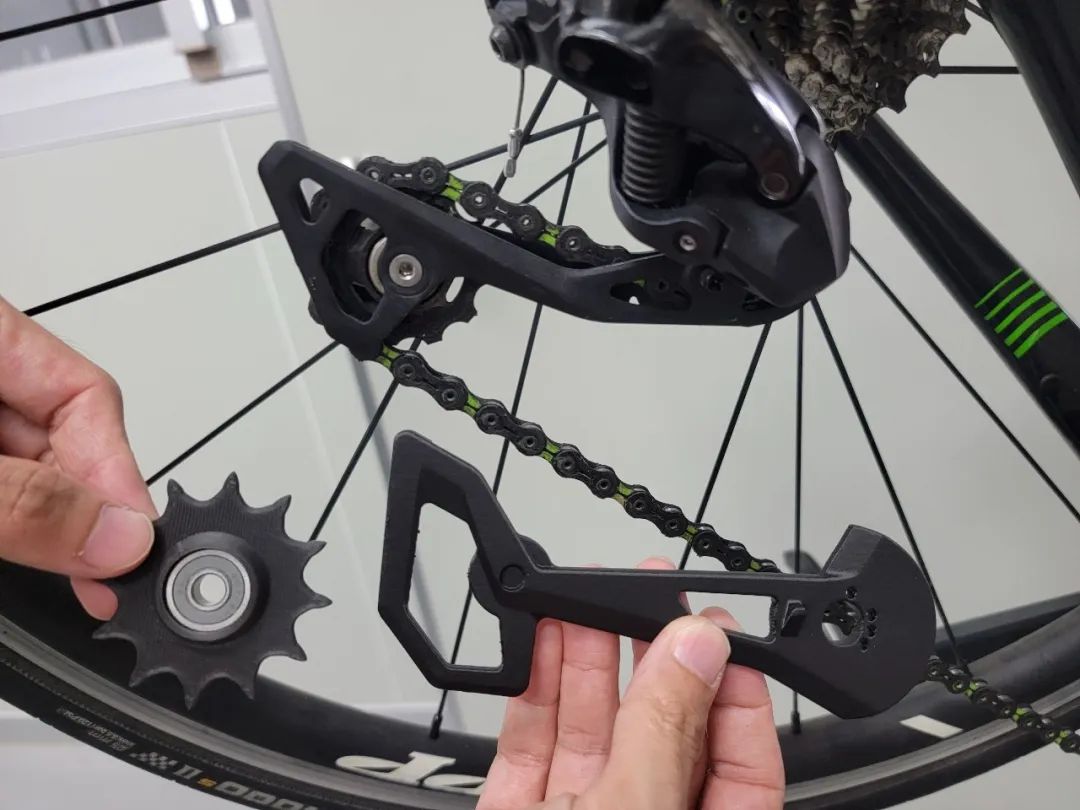 使用Onyx復(fù)合連續(xù)纖維材料制造的零件也可用來作為零件開模前的打樣、測(cè)試,比如后變速器的導(dǎo)輪,就是使用Onyx材料制造完成的,可用作開模前模型驗(yàn)證。