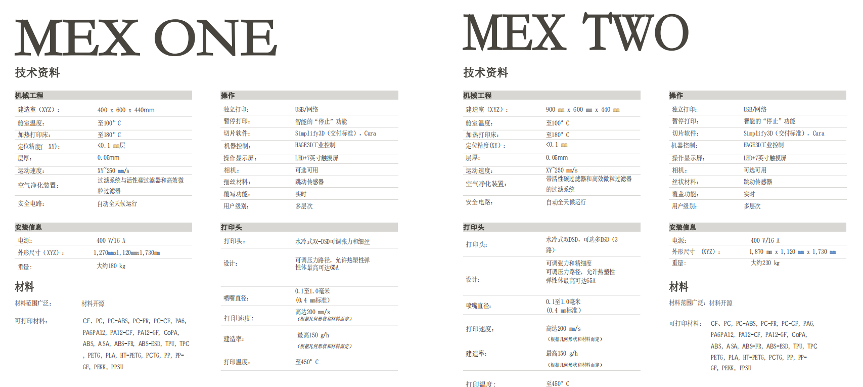 MEX系列具備高性價(jià)比和較強(qiáng)的實(shí)用性,同時(shí)為確保工藝的可靠性,MEX系列的整個(gè)打印頭溫度是熱電耦控制,以量產(chǎn)速度打印工程塑料,快速實(shí)現(xiàn)大尺寸零件打印。