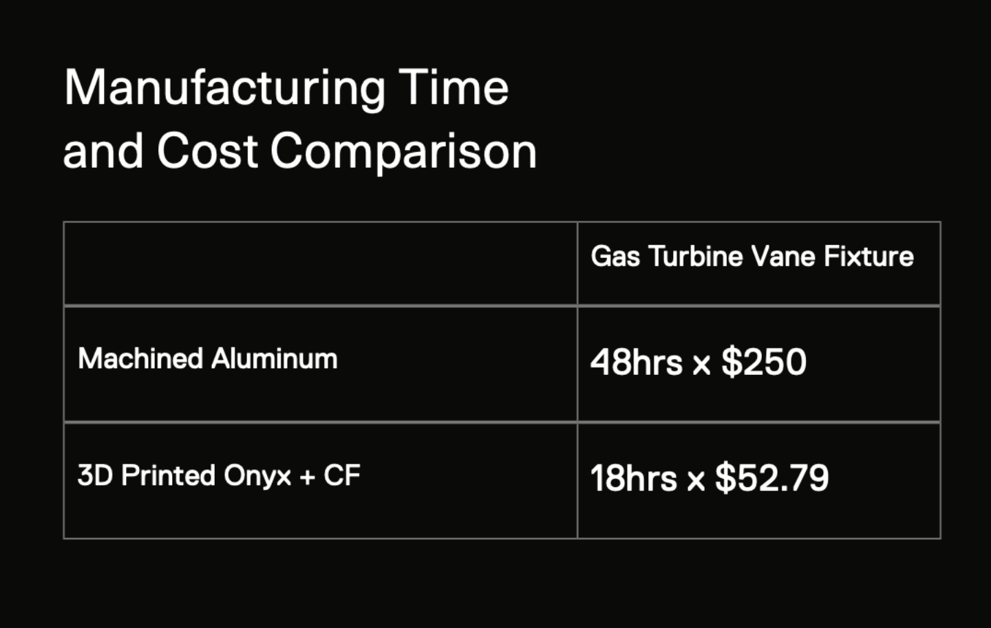 以前,在這些測(cè)試中使用金屬和墊片夾具來(lái)固定葉片。但這些夾具的加工時(shí)間長(zhǎng)達(dá)6周,硅膠墊片的模具費(fèi)用高達(dá)10,000美元。因此,TAC團(tuán)隊(duì)開(kāi)始用Onyx和高比例的連續(xù)碳纖維來(lái)生產(chǎn)這些夾具,以確保它們有足夠的強(qiáng)度來(lái)牢牢固定葉片。但這樣做有時(shí)會(huì)導(dǎo)致打印時(shí)間超出預(yù)期,浪費(fèi)材料。