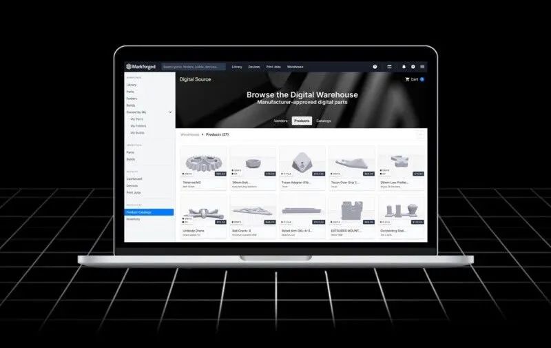 Digital Source是一個按需制造平臺,在需要的時間和需要的地點即點即印OEM批準的高品質(zhì)3D打印零件。通過該平臺所實現(xiàn)的企業(yè)安全數(shù)字倉庫,將使企業(yè)減少實物庫存而帶來的成本壓力。 Digital Source平臺穩(wěn)定的安全保障數(shù)字零件的文件,通過該平臺,用戶能夠發(fā)送加密的指令直接連接到3D打印機,從而保護設(shè)計。 Markforged開發(fā)并集成了其公司自有的材料、3D打印機和軟件,從而實現(xiàn)端到端過程控制。制造用戶可以靈活地現(xiàn)場制造零部件或無縫聯(lián)系外包服務(wù)上。如果用戶現(xiàn)場沒有3D打印機,還可以直接從3D打印服務(wù)商網(wǎng)絡(luò)訂購所需零部件。 通過Digital Source平臺,制造業(yè)用戶可以根據(jù)需求進行規(guī)?;a(chǎn)。當零件需求超過本地3D打印機的產(chǎn)能時,可以通過該平臺選擇滿足制造商打印工藝要求的3D打印服務(wù)商,將生產(chǎn)需求進行外包。而實現(xiàn)這一切,只需在Digital Source平臺上一鍵點擊。