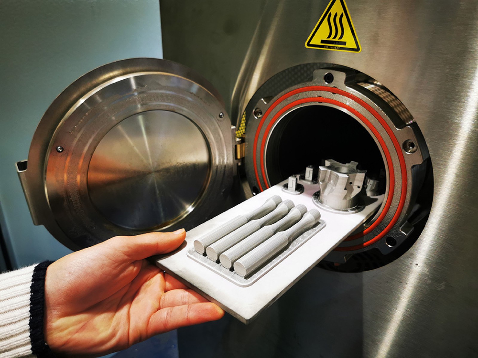 從 Metal X 燒結(jié)機中取出的金屬零件成品