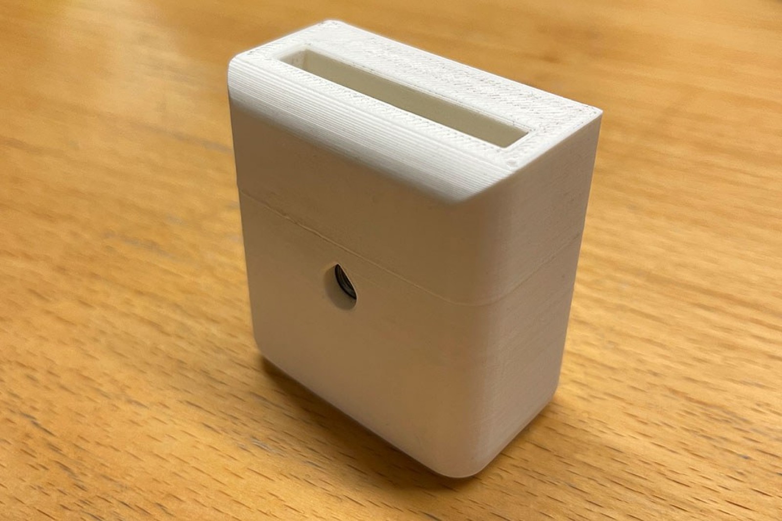 3D 打印的鎖定件,用作線路末端的止動(dòng)裝置。內(nèi)部有 M6 螺母,要求側(cè)面的孔需要有水滴形輪廓。對(duì)于這個(gè)特定的項(xiàng)目,客戶只需要不多的幾個(gè)零件,并且制造整個(gè)鋼制零件的成本是 3D 打印技術(shù)的六倍