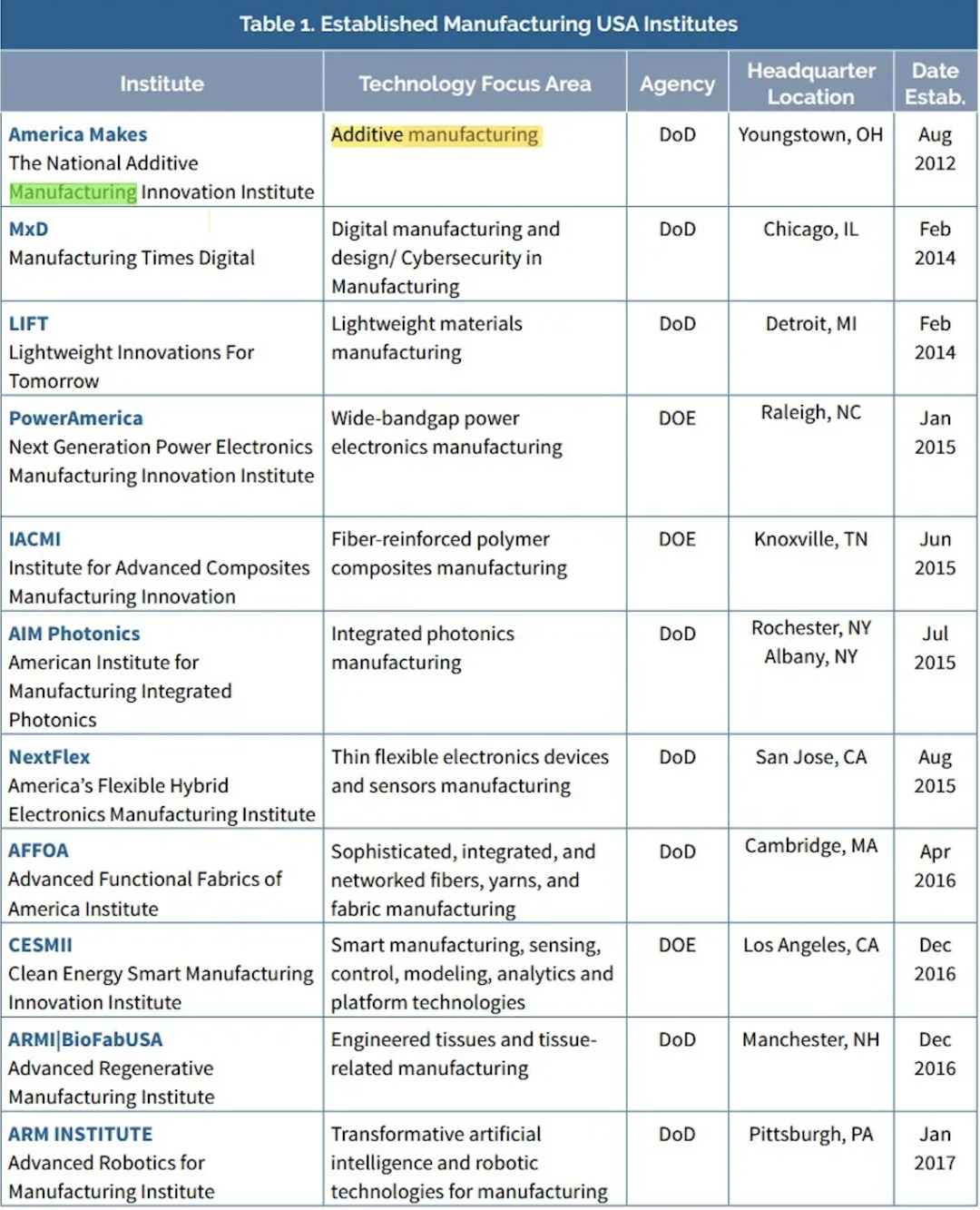 3D打印入列《美國制造業(yè)戰(zhàn)略計劃2024》先進制造關鍵技術