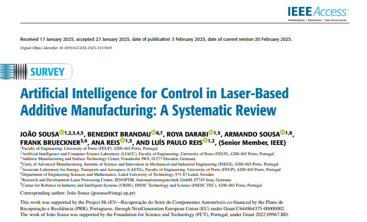 2025年8月,來(lái)自波爾圖大學(xué)、弗勞恩霍夫 IWS、呂勒奧理工大學(xué)、牛津大學(xué)、INESC TEC和德累斯頓工業(yè)大學(xué)的研究人員在《IEEE Access》上發(fā)表了一篇系統(tǒng)綜述,概述了人工智能 (AI) 在基于激光的增材制造 (LAM) 過(guò)程控制中的新興應(yīng)用。
