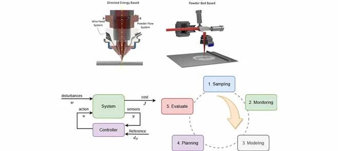通過(guò)分析2021年至2024年間發(fā)表的16項(xiàng)研究,綜述發(fā)現(xiàn)62.5%的研究已在現(xiàn)實(shí)環(huán)境中部署了AI驅(qū)動(dòng)的控制器,而56%的研究將AI專門應(yīng)用于強(qiáng)化學(xué)習(xí) (RL) 等控制策略。在所審查的研究中,62.5%的研究將AI用于過(guò)程建?;虮O(jiān)控,68%的研究針對(duì)由過(guò)熱或過(guò)熱引起的不穩(wěn)定性——這是LAM中缺陷的主要來(lái)源。激光增材制造 (LAM) 是增材制造的一個(gè)分支,它使用粉末床熔合 (PBF) 或定向能量沉積 (DED) 逐層構(gòu)建金屬零件。PBF的激光功率較低,通常低于1千瓦,掃描速度高達(dá) 2,000 毫米/秒,可小規(guī)模生產(chǎn)高精度零件。DED 使用粉末或線材原料,激光功率可達(dá)40千瓦,可實(shí)現(xiàn)更高的沉積速率和更大的結(jié)構(gòu)。這些工藝差異會(huì)產(chǎn)生不同的熔池特性、熱梯度和缺陷輪廓,需要單獨(dú)的控制策略。審查確定了可以應(yīng)用人工智能的五個(gè)關(guān)鍵階段:智能采樣、過(guò)程監(jiān)控、建模、控制器設(shè)計(jì)和性能評(píng)估。盡管激光輔助顯微成像 (LAM) 試驗(yàn)成本高昂,但經(jīng)典的實(shí)驗(yàn)設(shè)計(jì) (DoE) 方法仍然是采樣中最廣泛的應(yīng)用,而貝葉斯優(yōu)化等自適應(yīng)技術(shù)(可根據(jù)快速變化或高度非線性的區(qū)域調(diào)整數(shù)據(jù)收集)不太常見,但在其他制造環(huán)境中顯示出效率提升。監(jiān)測(cè)方法通常結(jié)合熱傳感和視覺(jué)傳感來(lái)捕捉熔池的幾何形狀和溫度,這些參數(shù)與零件質(zhì)量密切相關(guān)。傳感器安裝在軸上,與激光器對(duì)齊,或安裝在軸外進(jìn)行外部監(jiān)測(cè)。在已審查的研究中,卷積神經(jīng)網(wǎng)絡(luò)處理基于圖像的數(shù)據(jù),而人工神經(jīng)網(wǎng)絡(luò)在多模態(tài)監(jiān)測(cè)中被證明是有效的,可以整合視覺(jué)、熱和聲學(xué)信號(hào)。一項(xiàng)研究發(fā)現(xiàn),這種多模態(tài)ANN方法在測(cè)試模型中實(shí)現(xiàn)了最高的缺陷預(yù)測(cè)準(zhǔn)確率。數(shù)據(jù)標(biāo)記仍然是一個(gè)限制因素:許多研究依賴于簡(jiǎn)化的熔池特征或最終檢測(cè)結(jié)果,而不是連續(xù)的實(shí)時(shí)標(biāo)記,這限制了PBF等高速工藝的響應(yīng)能力。