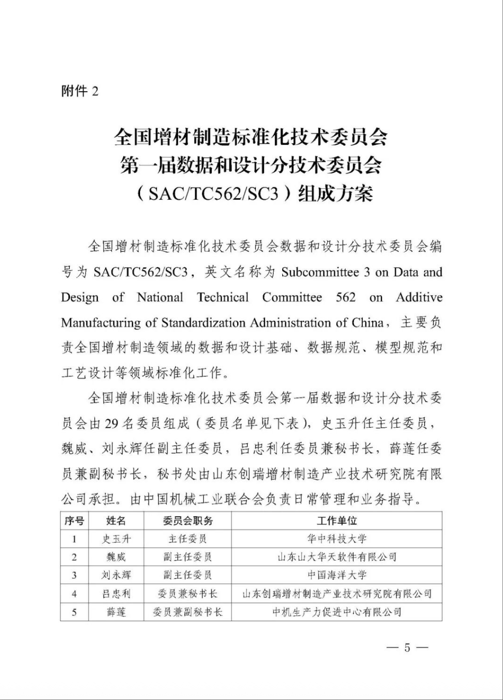 9月5日,國家標(biāo)準(zhǔn)化管理委員會(huì)發(fā)布了“關(guān)于成立全國增材制造標(biāo)準(zhǔn)化技術(shù)委員會(huì)數(shù)據(jù)和設(shè)計(jì)分技術(shù)委員會(huì)”的公告(下稱:數(shù)據(jù)和設(shè)計(jì)分委)。亞太材料科學(xué)院院士、華中科技大學(xué)教授史玉升任主任,山東山大華天軟件有限公司創(chuàng)新中心副總經(jīng)理魏威、中國海洋大學(xué)教授劉永輝任副主任,山東創(chuàng)瑞增材制造產(chǎn)業(yè)技術(shù)研究院董事長呂忠利任委員兼秘書長、山東創(chuàng)瑞增材制造產(chǎn)業(yè)技術(shù)研究院擔(dān)任秘書處單位。這是我國在戰(zhàn)略性新興產(chǎn)業(yè)——增材制造標(biāo)準(zhǔn)體系構(gòu)建中邁出的關(guān)鍵一步,標(biāo)志著中國增材制造領(lǐng)域以“數(shù)據(jù)主權(quán)”與“設(shè)計(jì)話語權(quán)”,正式邁入全球智能制造規(guī)則的競爭,更是我國增材制造領(lǐng)域具有重大意義的歷史性突破——中國首家民營企業(yè)擔(dān)綱秘書處單位的全國技術(shù)分委員會(huì)。