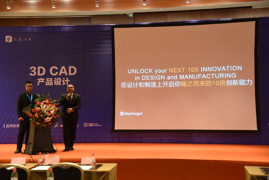 在3D打印解決方案部分,連續(xù)纖維高端復(fù)合材料打印的廠商Markforged公司副總裁Ved Narayan先生為參會(huì)者展示了3D打印領(lǐng)域的新近技術(shù)。依賴連續(xù)碳纖維3D打印技術(shù),Markforged系列3D打印機(jī)能夠打印出性能超過鋁合金的連續(xù)碳纖維復(fù)合材料,可直接應(yīng)用到產(chǎn)品上。同時(shí),Ved Narayan向與會(huì)嘉賓分享了國際多家知名客戶的應(yīng)用案例,令人大開眼界。
