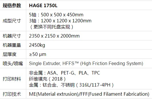 HAGE 175X開源3D打印機設(shè)備參數(shù)表