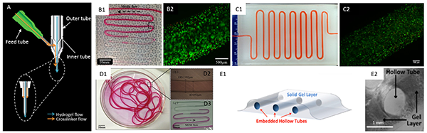 圖1 生物打印血管及血管化組織示意圖