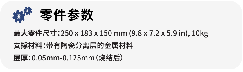 ADAM成型技術與FDM類似,將金屬粉末分布到樹脂中,幫助金屬粉末成型,成型后將非金屬部分去除,當非金屬部分被去除掉后,金屬形成預期的形狀,而且后期的燒結工藝保證了零件XYZ方向均勻的強度。