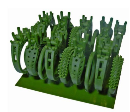 | EnvisionTEC WIC 100 (綠色)材料含20%蠟成 分,打印精度高,速度快,適合應(yīng)用于熔蠟工藝。 |